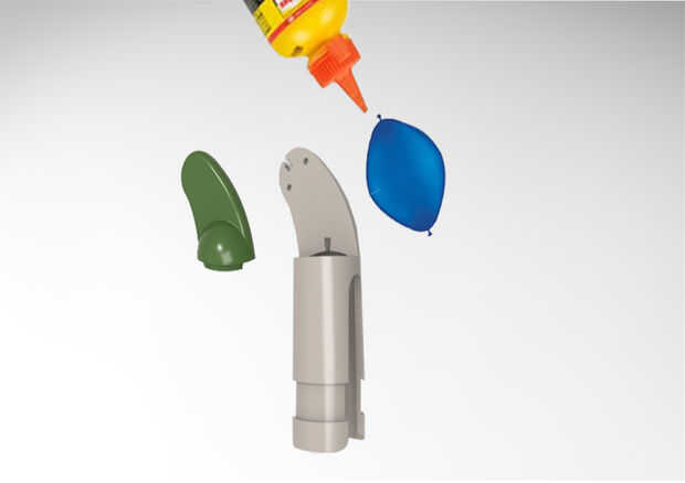 • Llenar el globo con el pegamento.