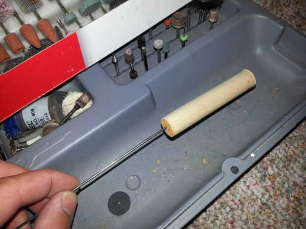 2. Ajuste la barra de acero en el agujero que sólo ha perforado (seco) para comprobar el ajuste.