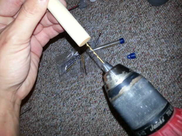 Perforar todo el camino si desea conectar una pinza y utilizar esto como una punta de prueba posterior para la prueba electrónica.