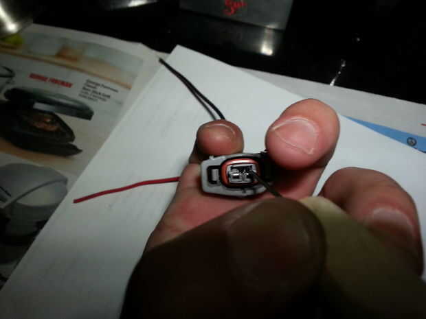 En el sexto cuadro, Im usando la herramienta para sacar la lengüeta para arriba mientras tira del cable. puede necesitar un ayudante o un vicio/abrazadera que se puede utilizar como una tercera mano. En esta foto puedes ver la lengüeta de la izquierda como yo levante una.