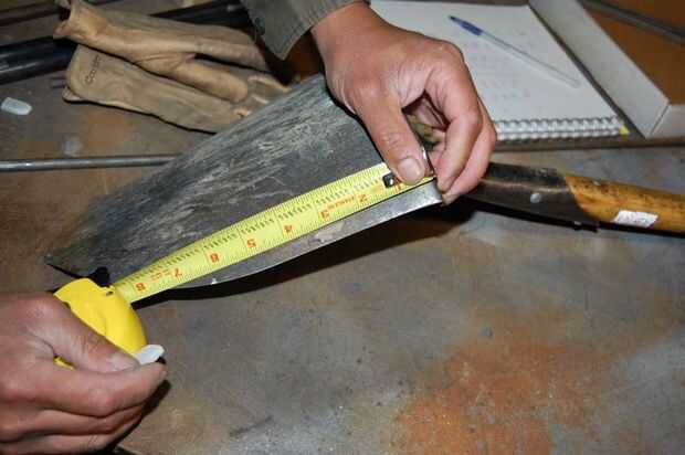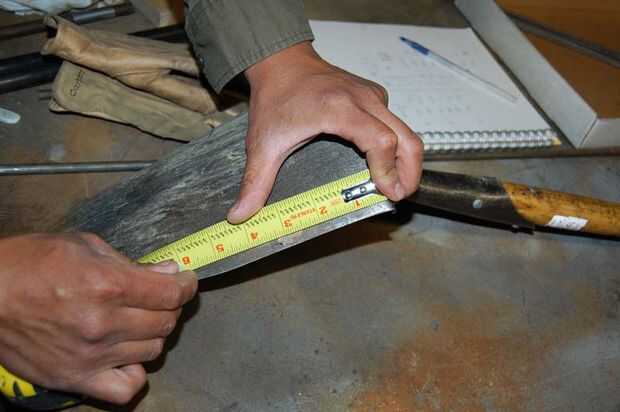 Tome una cinta métrica y en la parte delantera y trasera de la pala, marca unos guiones con su piedra natural. Hacer su marca aproximadamente 6 pulgadas del paso de la pala.