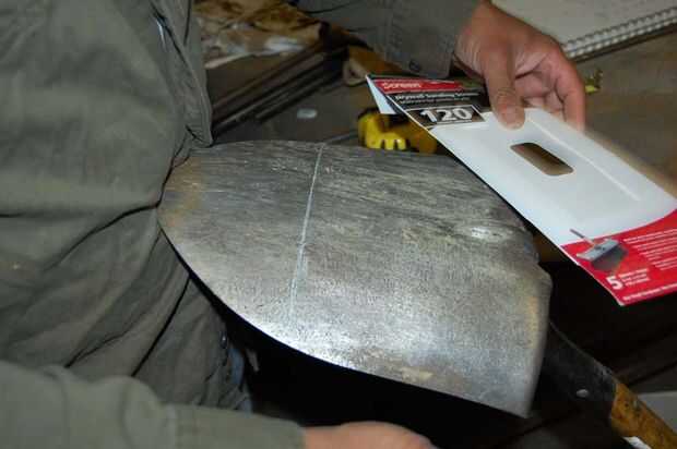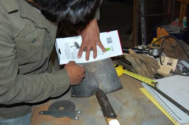 Ahora tome su esteatita y conecte los guiones en la parte delantera y trasera de la pala. Esto es donde realizará su amoladora de ángulo con la rueda de corte y corte a través de la pala. Una vez más generalmente hago mis marcas en 6 pulgadas.