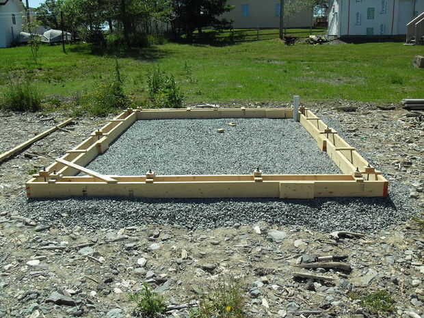 El pie sí mismo es 5 1/2 pulgadas de alto por 5 1/2 pulgadas de profundidad va todo el camino alrededor del perímetro del invernadero. Dimensons exterior son 2 pulgadas de 10 pies por 14 pies 2 pulgadas y el interior dimensiones son 9 pies 3 pulgadas por 13 pies 9 pulgadas. La estructura es 2 x 4 madera así cuando las placas de pared de fondo se colocan en el concreto la es una pulgada de concreto expuesto todo el perímetro interior y exterior.