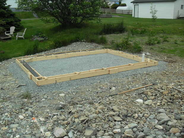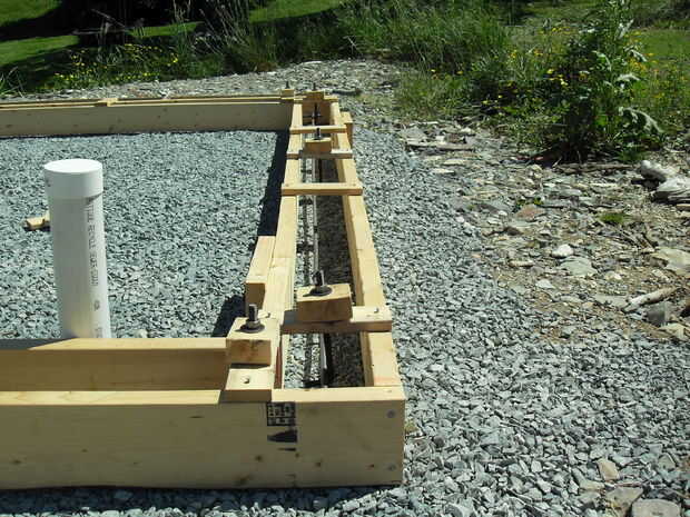 La forma sí mismo está construida de madera de 2 por 6 con algunas 1 por 3 Fleje para abrazaderas. Esto debería ser bastante recta hacia adelante a cualquier persona con aptitudes para el bricolaje decentes. Construí la forma en la entrada y luego se trasladó todo a su posición más tarde.