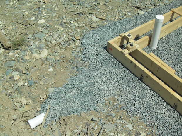 Finalmente, la última foto muestra la pipa de alcantarilla del PVC para el desagüe de efecto invernadero. Va desde el interior del invernadero, por debajo de la pie y termina justo donde el drenaje francés se ejecutará perpendicular a él.