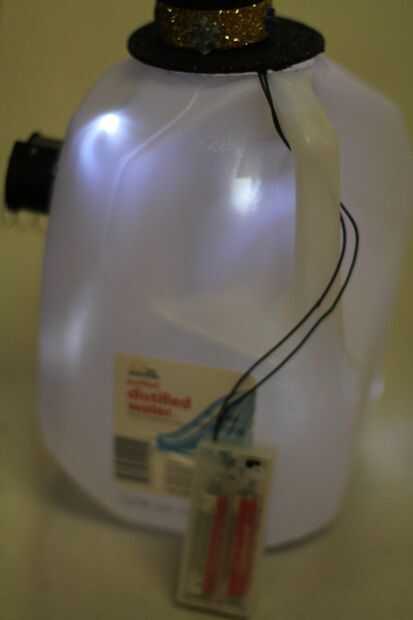 Quiero a la luz el final de la historia, que es cuando sucede la magia. Así que poner las luces (que había comprado en una tienda local de dólar por un dólar, gran inversión) hacia abajo dentro de la jarra. Asegúrese de dejar la batería colgando hacia fuera. Tendrá que ser capaz de alcanzar fácilmente el interruptor.