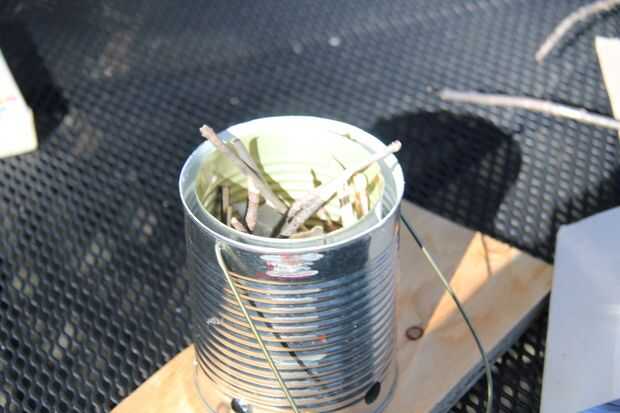 esta es la rama de lata estufa hoboes han utilizado para cocinar desde tiempos inmemoriales.Es rápido de hacer, fácil a la luz y hace mucho de cocinar con meros puñados de ramitas para el combustible.No hace mucho humo o brillo mucha luz, en caso de