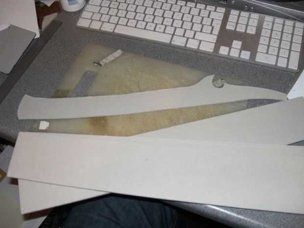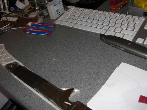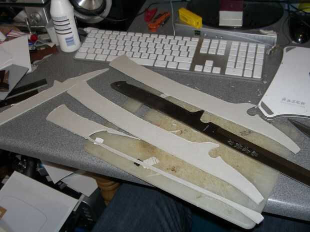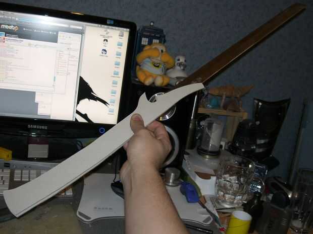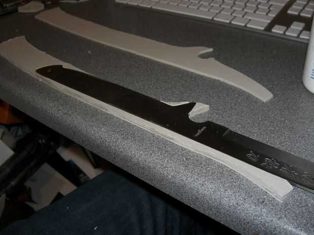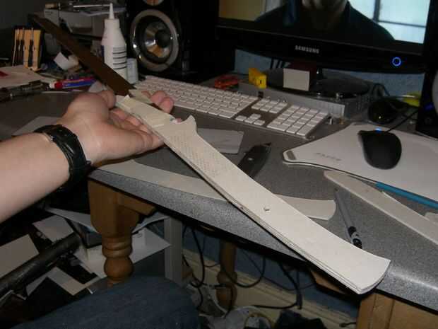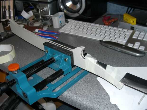 Luego pegué las tres secciones juntas alrededor de la espada, fue complicado porque utilicé dos colas.