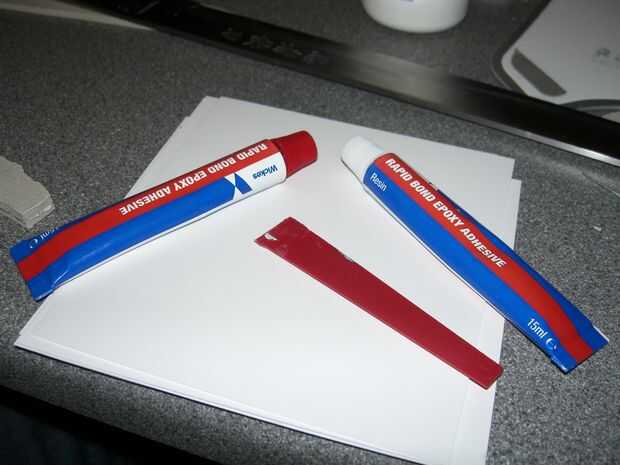 Cuando la tarjeta se unió a tarjeta utilizar pegamento PVA (embarcaciones). Cuando la tarjeta se unió a metal, usé dos parte la resina de epoxy.