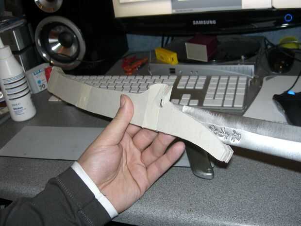 En primer lugar usando su marca de plantilla en la parte inferior de la manija del metal se encuentra dentro.