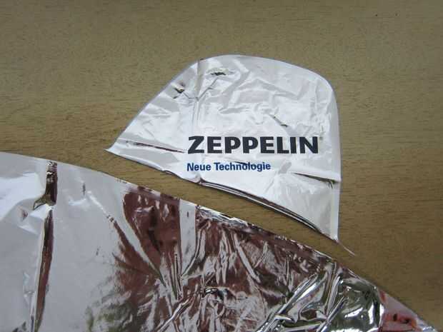 Los globos Zeppelin NT vienen con una aleta de la cola y una góndola para inflar. Como estos contribuyen más al peso que para la flotabilidad, se hayan retirado para este proyecto.