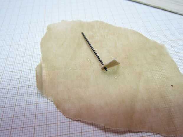 Cada bisagra se hechas de Tyvek, pegado en la balsa e impregnado de pegamento para reforzar. Después de que el pegamento ha fijado la bisagra es aflojada para arriba moviendo hacia adelante y hacia atrás un par de veces.