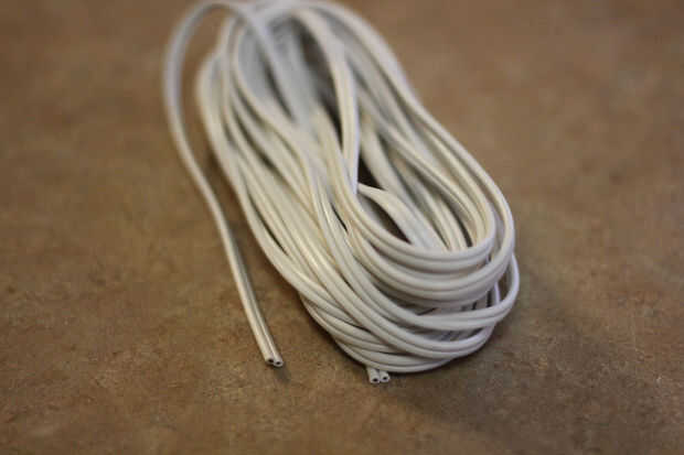 Usted necesitará un cable. Otra vez, sobre lo hice con algunos a la izquierda sobre el cable de la lámpara de calibre 18. Probablemente podría conseguir lejos con calibre 20 o 22 en tiradas cortas.