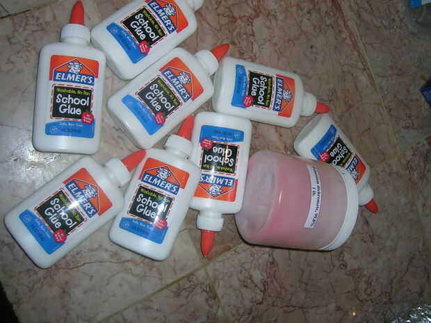 4 onzas de agua. Esta puede almacenarse en una botella de vidrio oscuro en un lugar oscuro durante varios meses. Compré mi potasio de ebay, 1 libra por $20 (envío incluido) esto resulta beneficioso si tu hacer un montón de impresión de la pantalla causa 1 lb = 543 gramos. Pegamento de Elmer es como $.25 cada almacena para arriba.