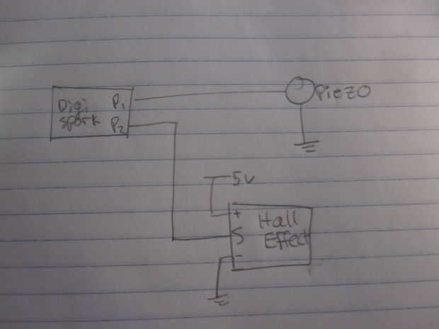 Dependiendo de cómo usted decide colocar la Junta, el dispositivo podría ser completamente diferente a la mía. Seguir el esquema provisto para conectar la Digispark, el sensor y el timbre para el perfboard. Si desea realizar cambios, consulte la refer Digispark.