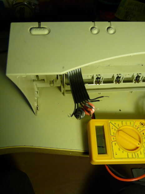 -utiliza el tester para medir resistencia, encuentro dos cables que bucles cuando se presiona el botón grande. Voy a utilizar esta característica más adelante en el proyecto
