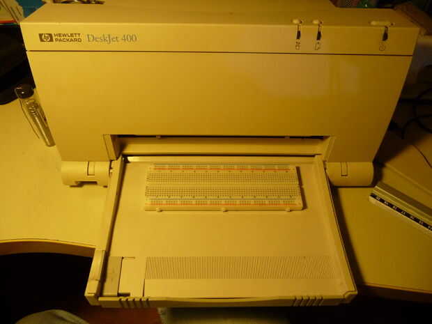 -antes de pegar, asegúrese de que bandeja de papel con la poder de protoboard conectado cerca