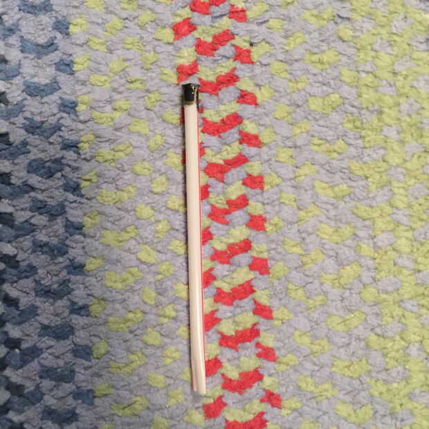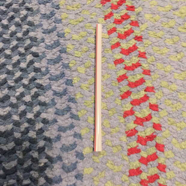 Agarra tu paja y cortar la parte flexible. Luego, cortar una abertura del tamaño de un centímetro de la paja. Por último, añadir un pequeño trozo de cinta adhesiva en el extremo opuesto de la hendidura.