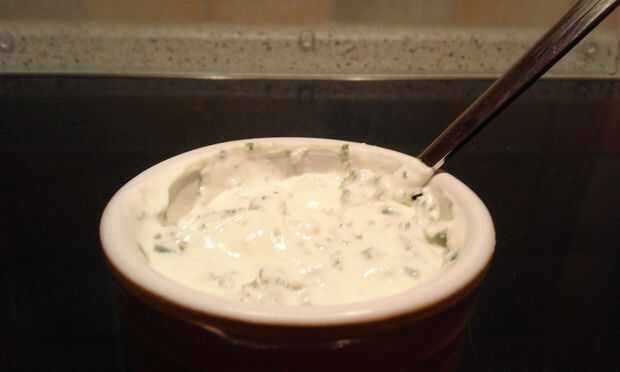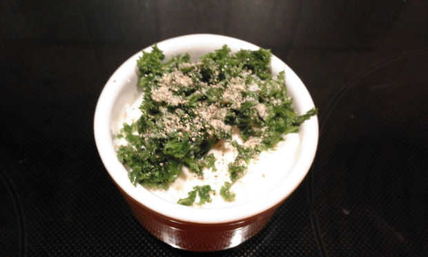 Poner las hierbas y una pizca de sal y pimienta en la cuajada y le dan un buen revuelo.
