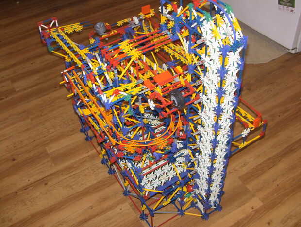 ¡ Hola! Aquí es un elemento de mi máquina de la bola de K'nex Freestyle! Fue ofrecido en ruta 3 donde trajo la pelota al piso blanco en la parte inferior. Lo creé porque realmente quería encontrar un uso para las ruedas! Una desventaja de esto fue qu
