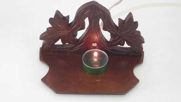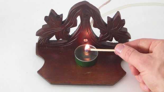 Ahora tu vela"inútil" es completa. Coloque una vela en el soporte al sensor. Entonces la luz. Después de un breve retraso, la bomba se encenderá y la vela. Si tratas de encender la vela, apenas soplará sí mismo otra vez.