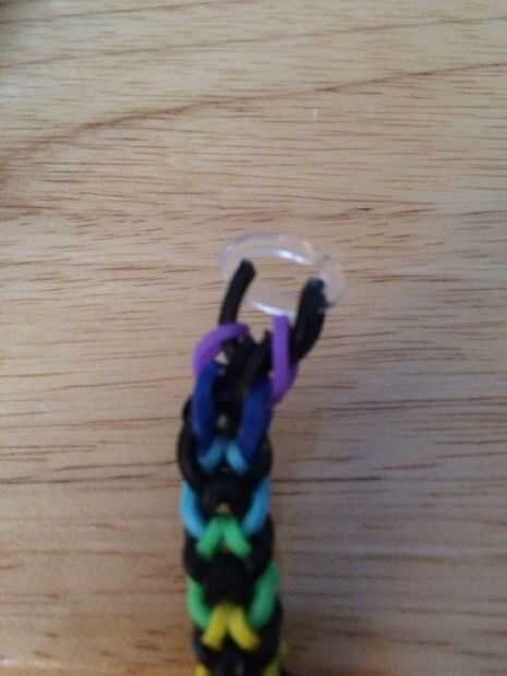 Por último, ponga el gancho a través de la última banda y tire de ella el telar. Coloque las bandas en el C clip y conectar los dos extremos. Finalmente, tu pulsera es completa. Esto es sólo el comienzo porque hay mucho más que puede hacer con el telar. Sea creativo y divertirse.
