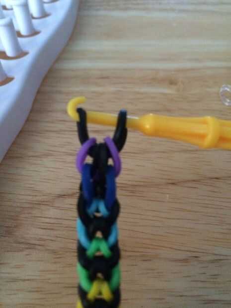 Aquí es cómo hacer el arco iris telar bebida sola.Paso 1: Obtener los elementos necesita cualquier color gomas C clip, gancho, telar.Paso 2: colocación de bandas de caucho Hacia fuera sus gomas en cada conjunto de clavijas.Paso 3: Tiempo de agregar t