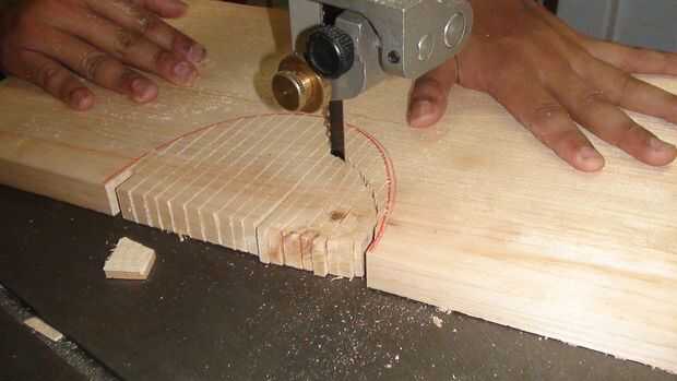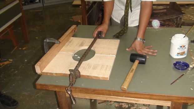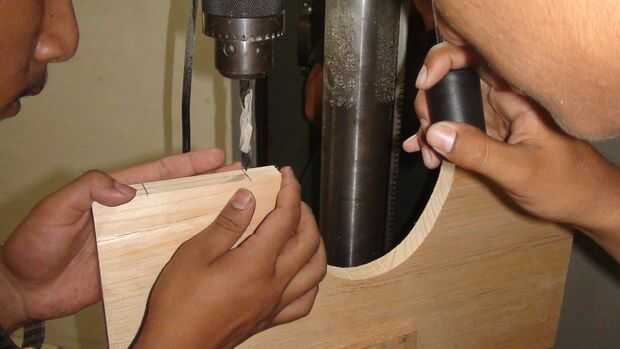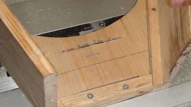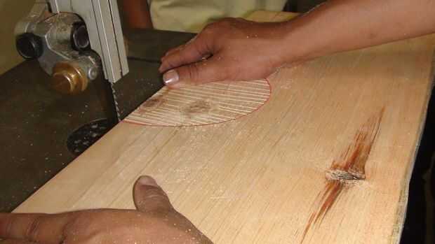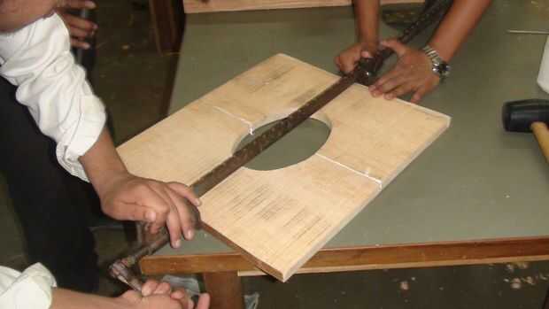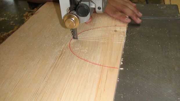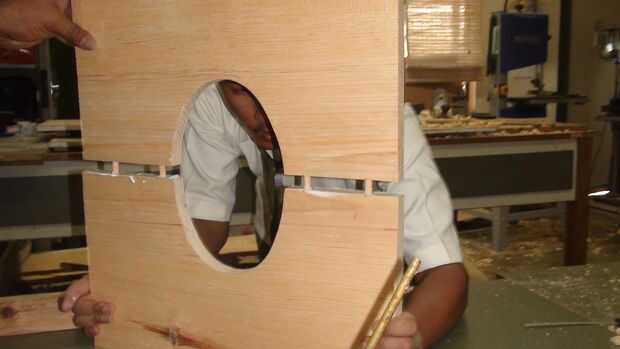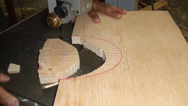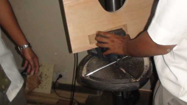 El panel frontal, tenía una elipse cortada en el centro para el altavoz en. Para ello, utilizan la sierra.