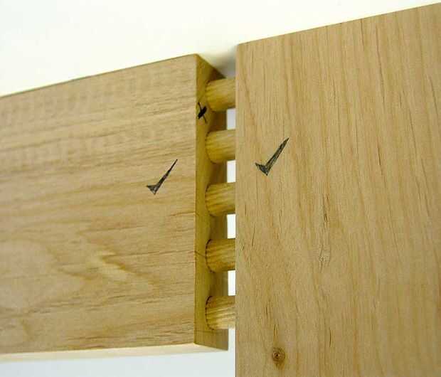 Usé tacos de madera para unir las piezas de madera porque no disponíamos de un gran pedazo y este era el mejor método encontrado. Del empalme fue utilizado como los lados debían ser conjunta en un ángulo. Sin embargo, si no había un ángulo, yo habría utilizado una mortaja y espiga común como sería estable.