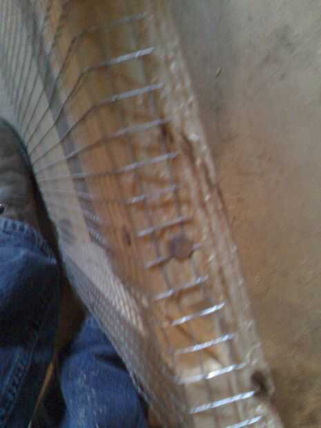 Ahora ten en cuenta que está construyendo el cable en la parte frontal de la jaula en el marco, así que poner el cable en el lugar correcto. También, envuelto el cable alrededor de la parte exterior del fram un poco solo para estar seguro, así que tuve que doblar en las esquinas un poco. Un martillo funciona bien para esto. Reciclarían, es bueno para el medio ambiente: p