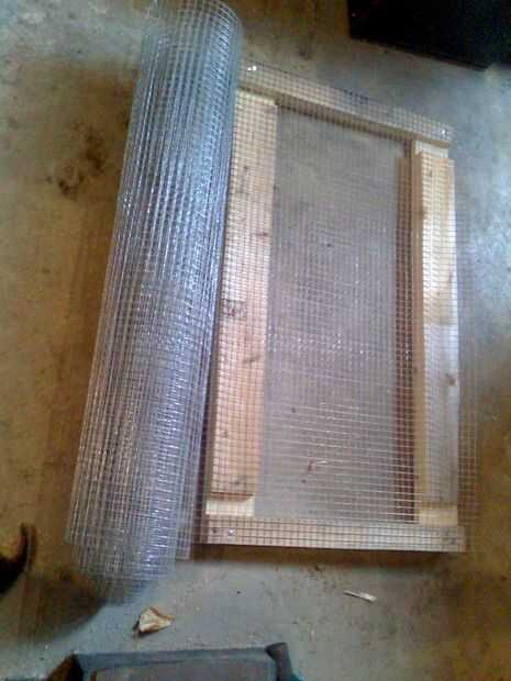 Primero pongo los palos en el suelo y el lugar uno 1 1/2" material para techos del clavo en cada una persona de contacto (esquina) y luego voltee se uso una gran plaza para asegurarse de que es apropiado. Luego coloque un segundo clavo en cada esquina, esta vez desde el otro lado, esto debe llevar a cabo su robusto bastidor de momento. No necesitas agregar más, ya que la construcción será sonida una vez que el alambre es sobre y los laterales se atornillan juntos.
