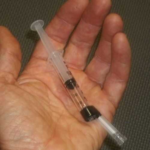 La tapa de la aguja de plástico sólo tiene leves modificaciones para convertirse en un canal de aire.