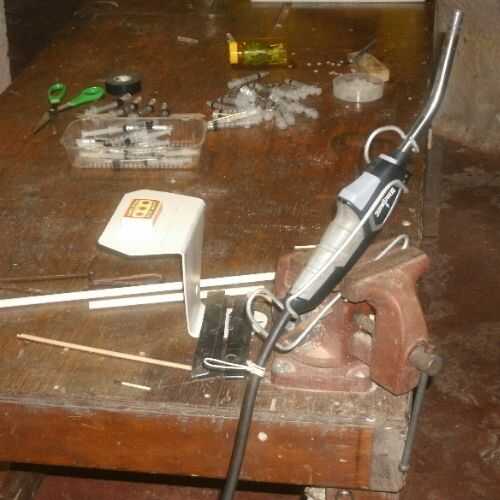 Ablandar el plástico y presione el tubo en donde pertenece en el cuerpo de la jeringa cuidadosamente. Objetivo para el ángulo que se ve en las fotos y la colocación al principio del agujero de sonido.