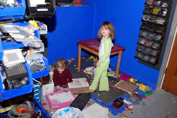 El área de juego de los niños me permite trabajar mientras los niños mantienen ocupado (bueno, cuando ellos se comportan). La pared es la clave de croma azul que uso como fondo de photoshopear los niños.