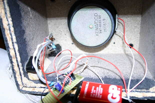 Instalar macetas, altavoz, encendido/apagado interruptor, enchufe, etc.... entonces finalmente el PCB completo dentro del recinto. Utilice zip lazos en sus líneas a em limpio encima de, en caso contrario puede vibrar contra el interior de la caja al jugar.