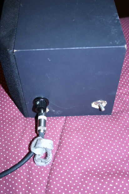 Tomar el recinto / eviscerado surround sonido altavoz y taladre los orificios para la toma de entrada Mono, 2 ollas (o uno), así como de su interruptor de encendido/apagado. Dependiendo de los componentes variará sus tamaños de taladro, así que te dejo a ese bit.