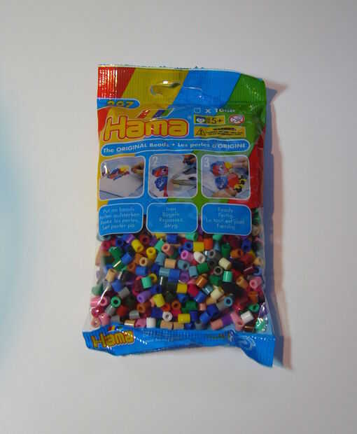 Comprar un conjunto de fusible de granos (por ejemplo granos de HAMA, Perler, Pony) y un pegboard.