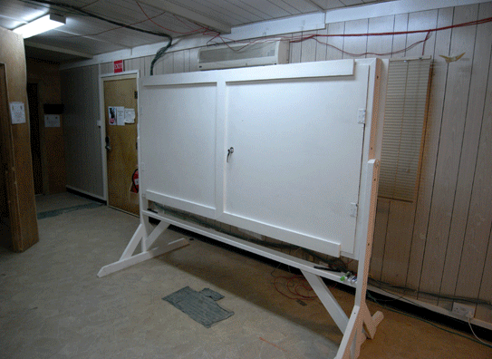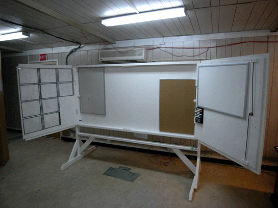 Para los que no en el militar, cuando un comandante de la base dice que haga algo, lo haces!! Mientras que yo estaba estacionado en Camp Bucca, el comandante de la FOB, un tipazo, me pidió que lo convierten en un "Consejo de guerra". Quería un tablón que él podría tener una pantalla normal de papeleo de rutina, pero cuando tuvimos una emergencia (un escape de los detenidos, las FDI (fuego indirecto en el FOB) o un motín en el centro de detención), quería que fuese capaz de voltear y abierto por lo que ya sería la base de los mapas y SOPs para el evento. Necesita ser cerrado con llave para que la gente no podía ver normalmente.