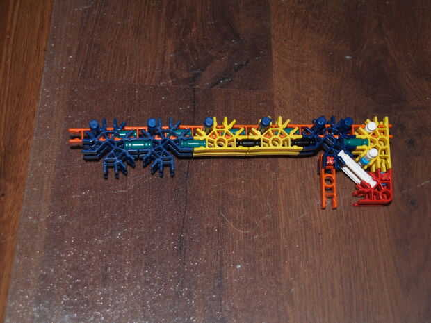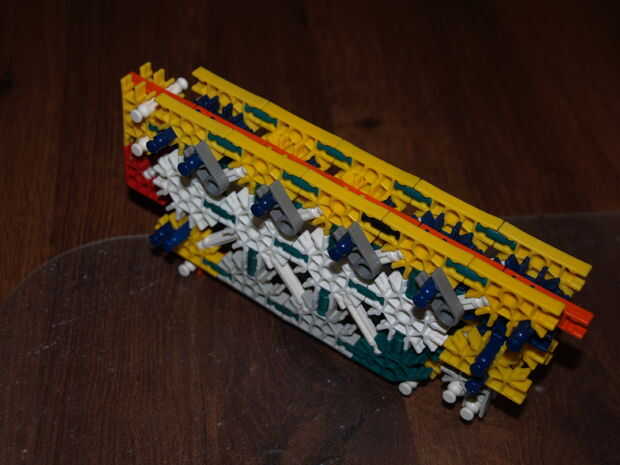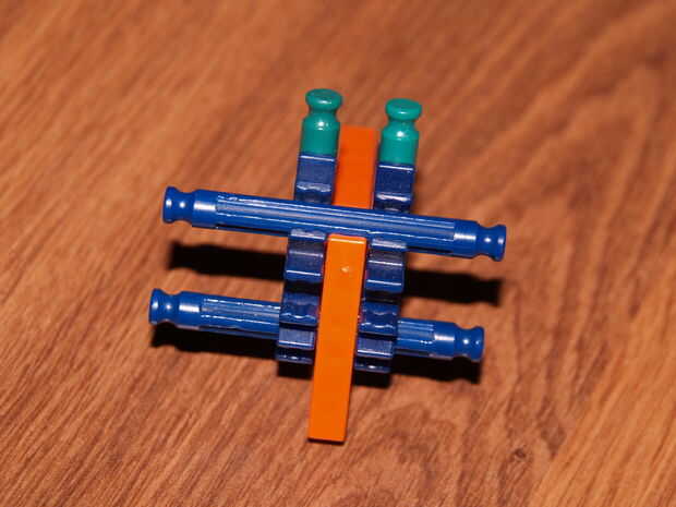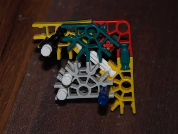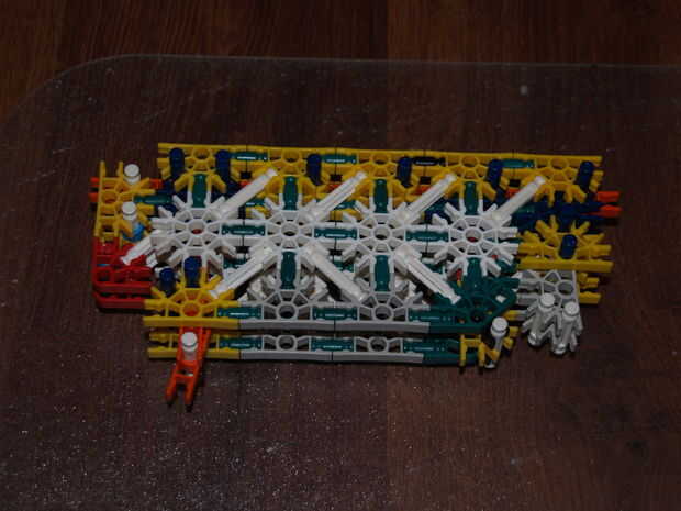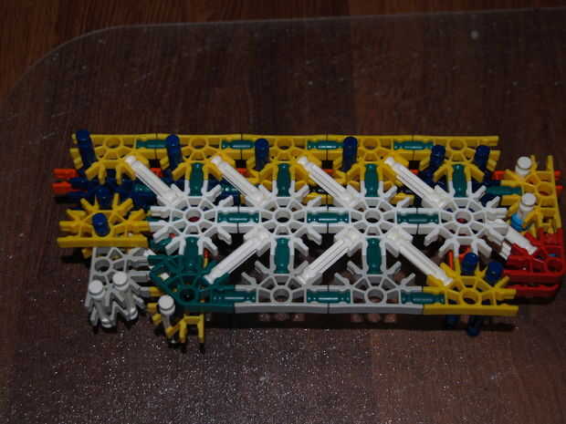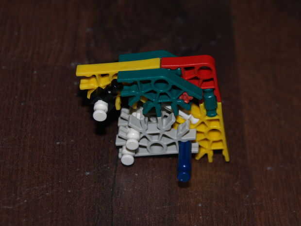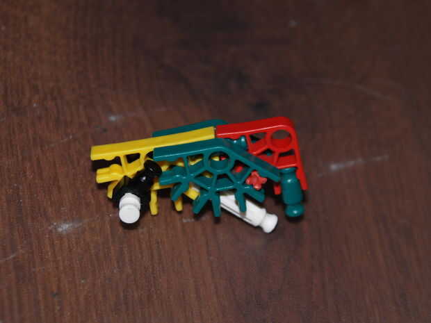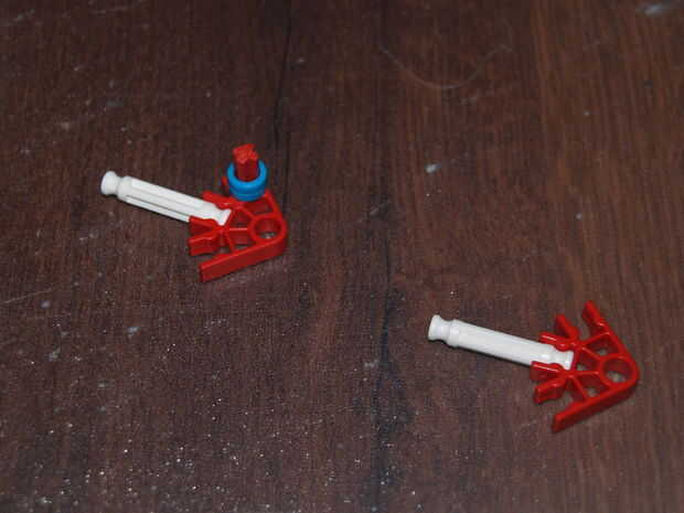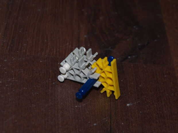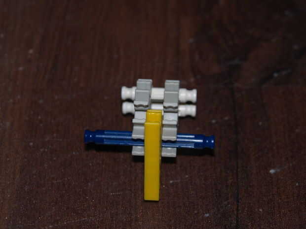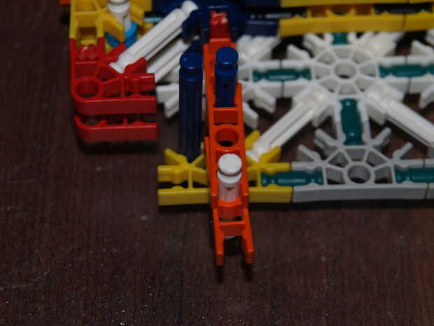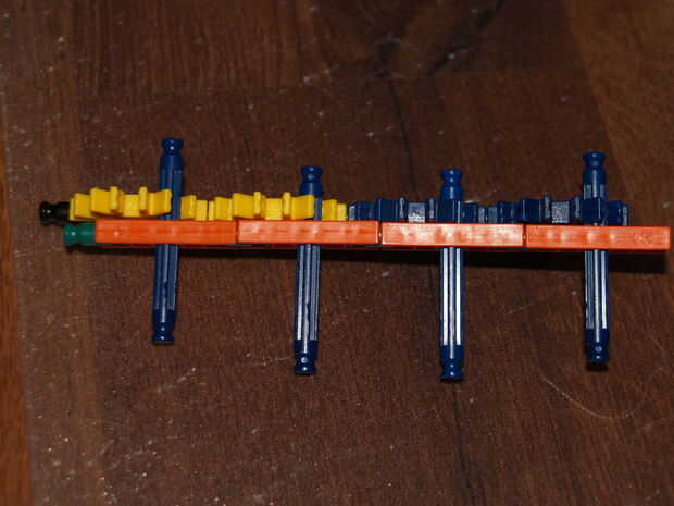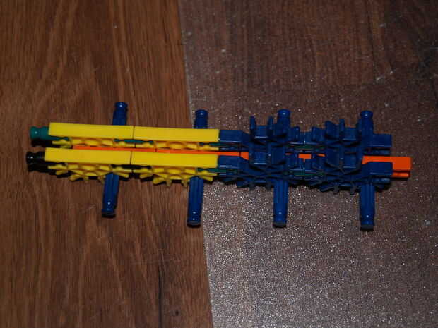 28: poner la parte en hecho pasado usando las varillas recogido en pic 23, el blanco roto es en el orificio de la roja con y en el agujero de la amarillo con a es la barra azul