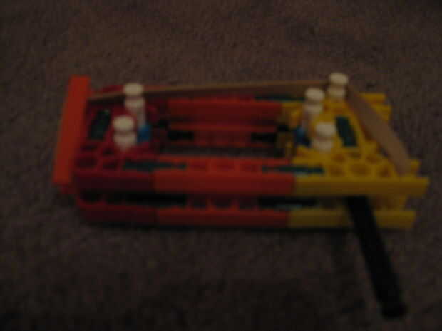 24 requiere KVG piezas, dos pequeñas bandas de goma y algunas pequeñas bandas de goma para munición (trabajo de bandas de refuerzo).Paso 1: El mango Paso 2: Cañón y disparo Paso 3: Mecanismo de carga Paso 4: Juntándolo todo Puede que tengas problemas