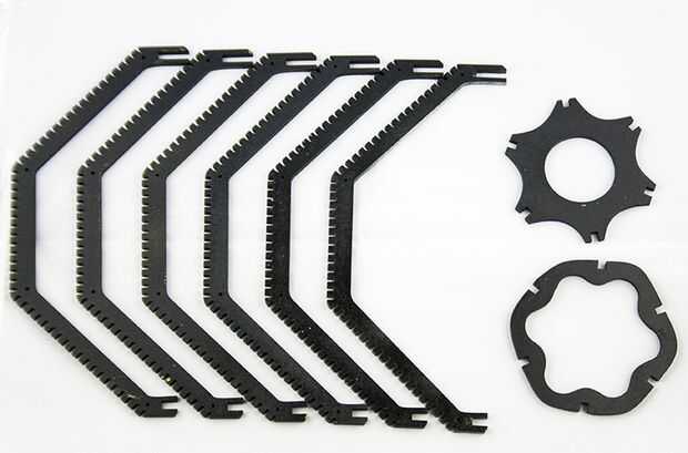 Cortar las piezas en el cortador del laser. Hemos utilizado 4mm MDF pero se puede utilizar plástico acrílico o cualquier otro material de su elección. Si no tienes acceso a un cortador láser es posible cortar las piezas con una sierra de calar si eres paciente.