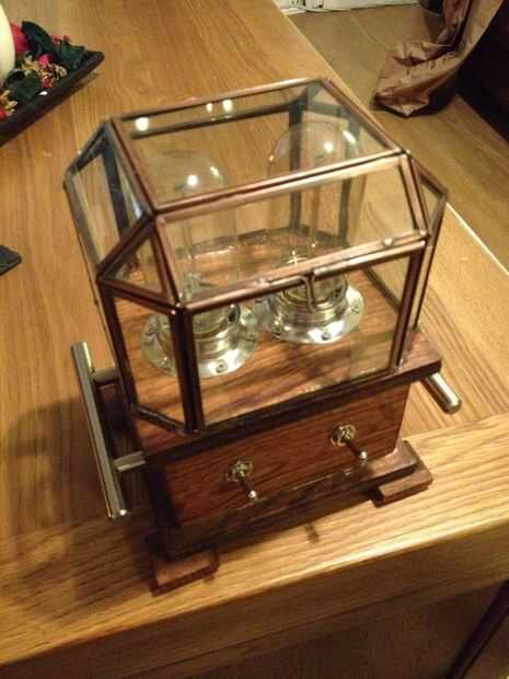 Esta simple lámpara vinieron juntos de una mezcla de piezas de bajo costo, un cuadro de oración iglesia re-purposed, un re-purposed joyero, manijas del cajón y unas dos horas de tiempo de construcción.