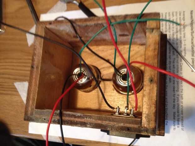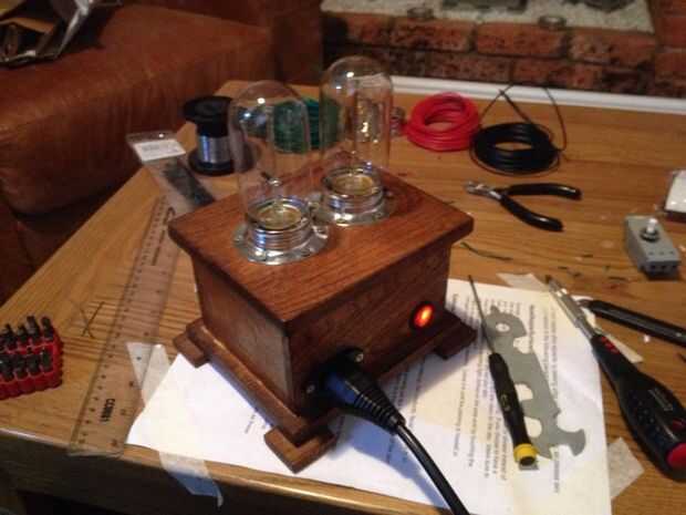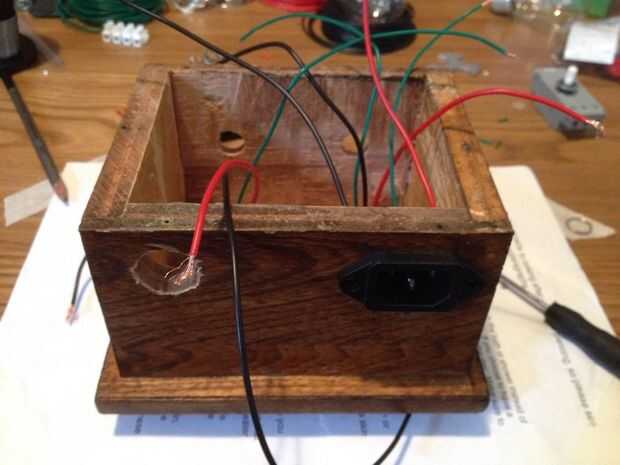 los titulares de su lámpara precableada (más fáciles de alambre fuera de la caja, a continuación, agregarlos más adelante) y añadir la parte superior terminada con los anillos de cortina (para limpieza). Fija los interruptores con los tornillos que vienen con ellos. Ajuste y los cables del conector IEC y el interruptor de eje de balancín iluminado.