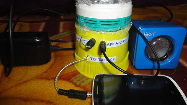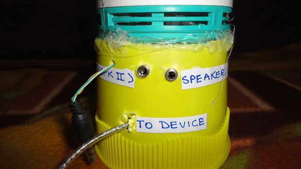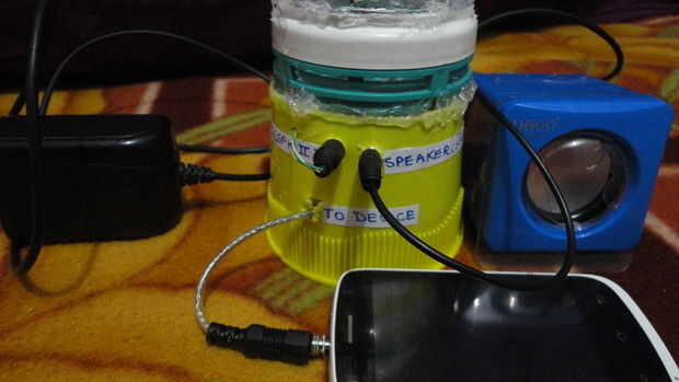 Luego conecte el otro puerto femenino a un altavoz. Ahora Conecte el adaptador de corriente y finalmente Conecte su dispositivo al divisor.