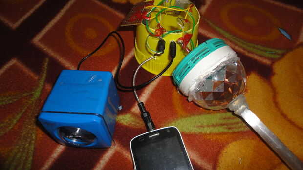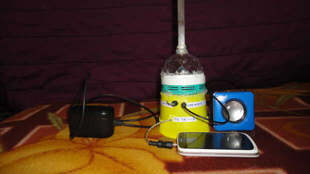 Ahora Conecte el circuito al separador y el puerto de adaptador hembra para el cuerpo. Ahora introduzca los LEDs RGB en el centro de la cubierta plástica de la lámpara del partido.