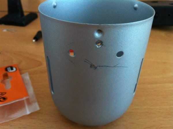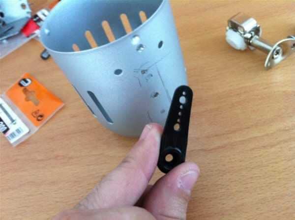 Ahora, vamos a taladrar la cabeza de la lámpara para colocar en el brazo del servo.