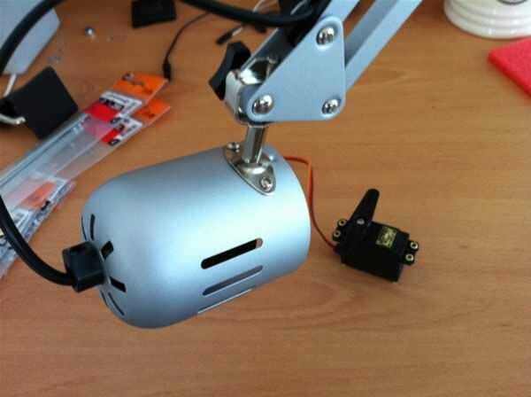 También agregó un segundo servo (más adelante) y había mejorado la instalación en el servo de la lámpara como se ve en estas fotos: