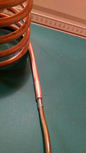 He utilizado 5M de flex de base color oro 0,5 mm 3 de las cuales cerca de 3M está contenido dentro de las bobinas. Cada intento de conseguir el flex impulsó acaba de terminar en fracaso hasta que me la pelaron la cubierta externa de 2M y con la ayuda de un cable que empujó a través de la vuelta superior y aceite vegetal, finalmente conseguirlo enrutados a través del tubo y de la curva de retorno.