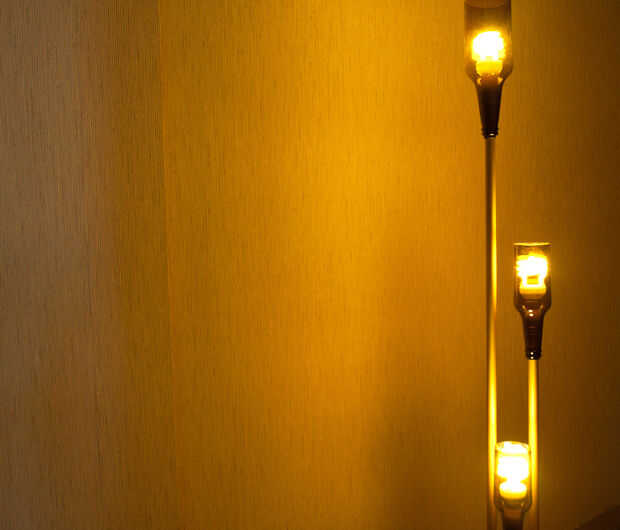 La lámpara está hecha de múltiples anillos de acrílico y un bloque de madera de jelutong en su base. La fabricación de lámpara requiere pocas habilidades, pero es necesaria una cortadora laser para cortar los discos de acrílico.Herramientas:Cortador