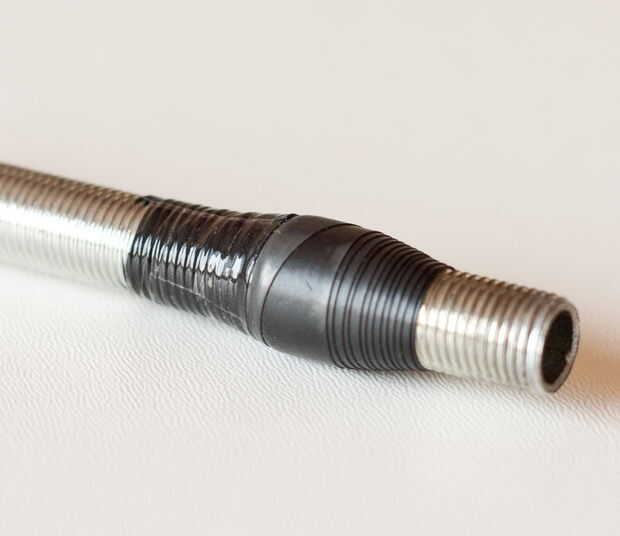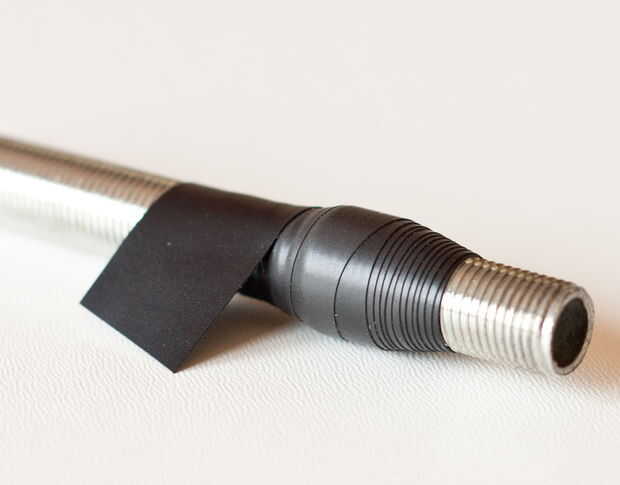 Puesto que el hilo de rosca del zócalo es un poco pequeña en comparación con el diámetro interior de los tallos, que necesitamos envolver las barras 6-8 cm con una cinta. El número de vueltas que usted necesita para hacer cierta fricción entre los tubos de prueba. Entonces yo había asegurada la cinta eléctrica con una cinta más pegajosa.